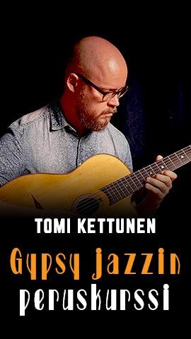 Tomi Kettunen on gypsy jazz -musiikkiin erikoistunut kitaravirtuoosi.
