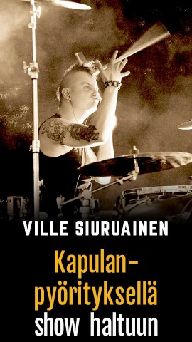Ville Siuruainen on lujaiskuinen rumpuammattilainen ja opettaja. Oppitunneilla erityisesti rumpujensoiton show-elementtejä.